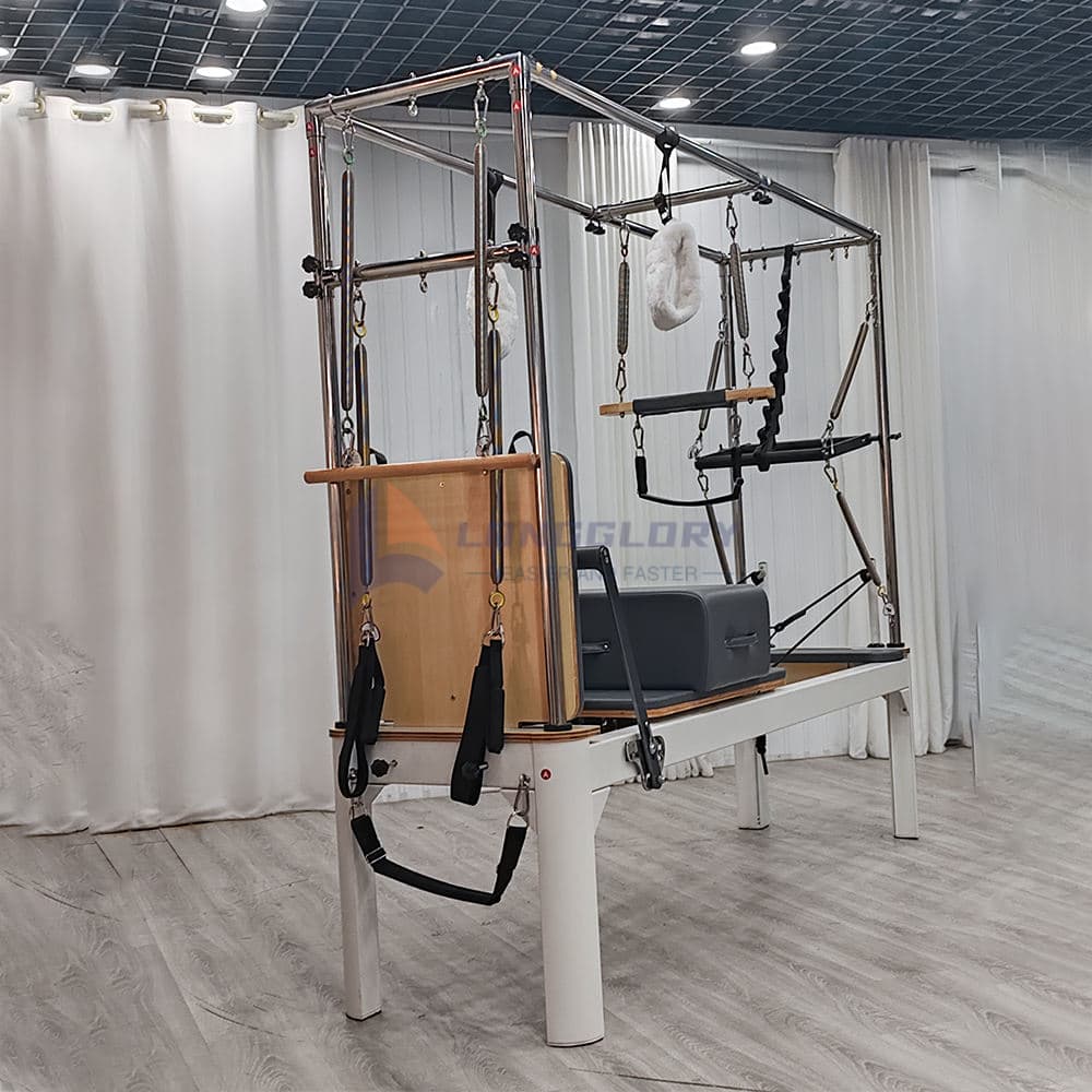 Ať už pro komerční použití nebo soukromou praxi, hliníkový pilates Cadillac Reformer tři v jednom poskytuje profesionální výkon, všestranné tréninkové funkce a dlouhotrvající strukturu pro kondicionování celého těla a terapii Pilates.