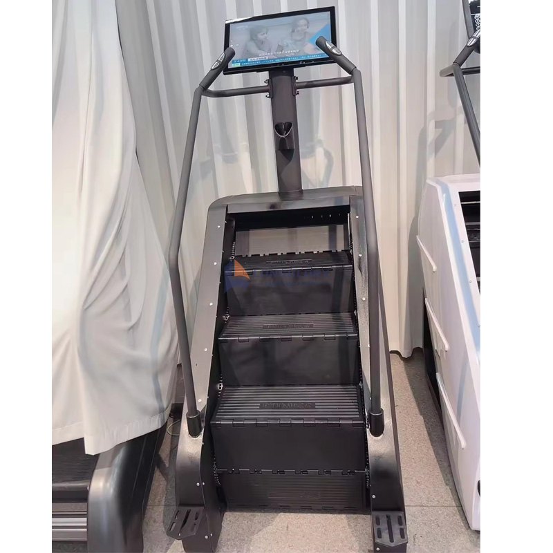 Široký stupňovitý design schodišťového stroje s dotykovou obrazovkou LCD je hlavním vrcholem. Širší platforma nabízí uživatelům větší komfort, vhodný pro různé tréninkové polohy. Ať už jde o rychlou chůzi, jogging nebo lezení, uživatelé mohou zažít volnější pohyb. Na tomto schodišťovém stroji najdou svůj preferovaný styl tréninku jak profesionální sportovci, tak příležitostní fitness nadšenci.