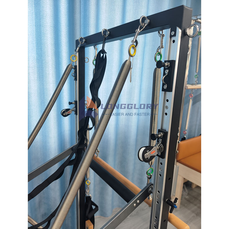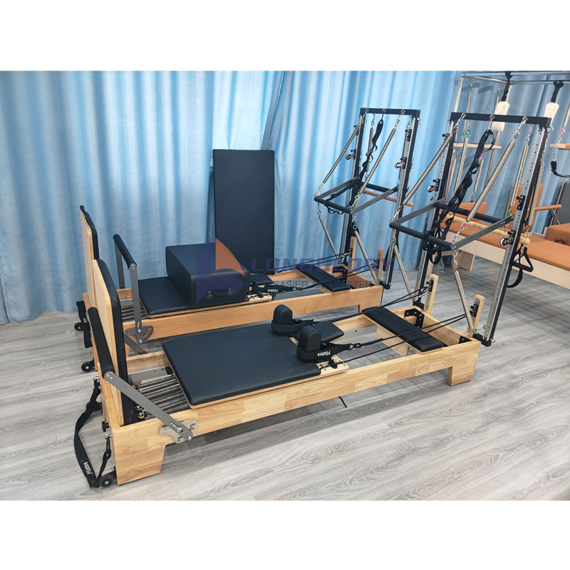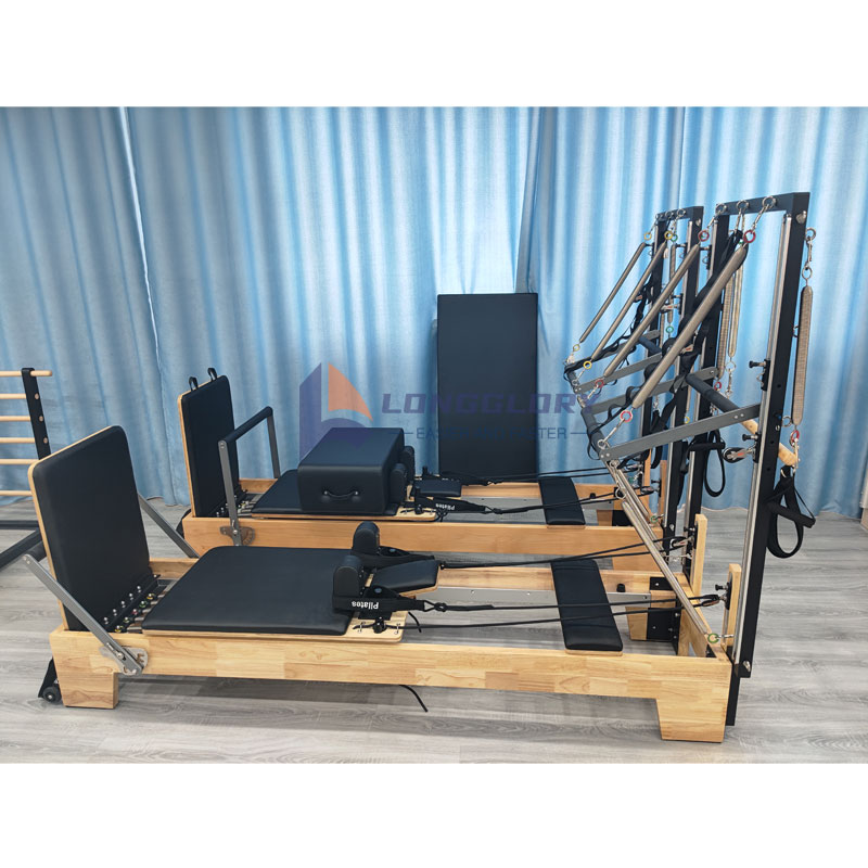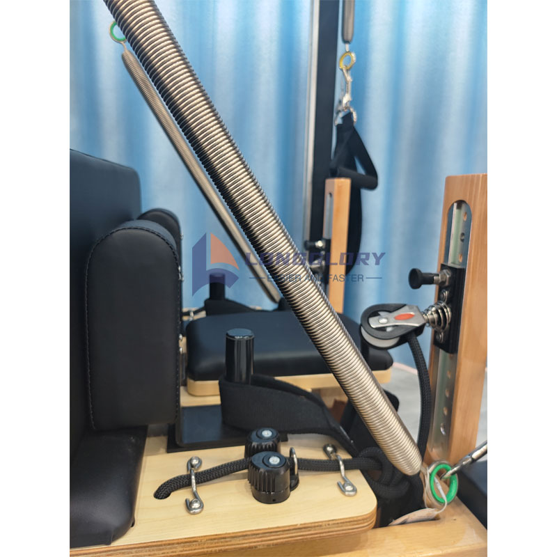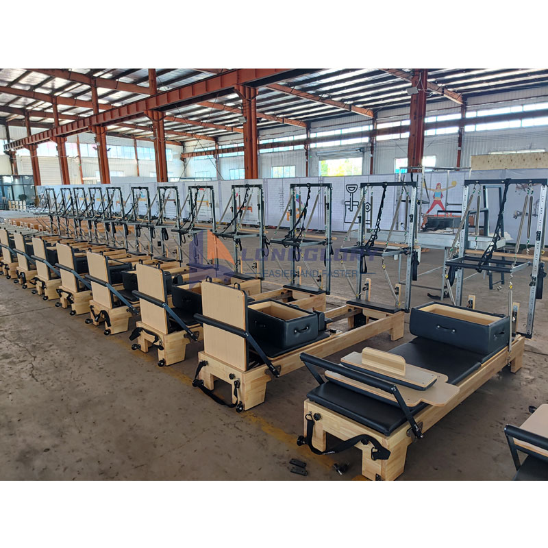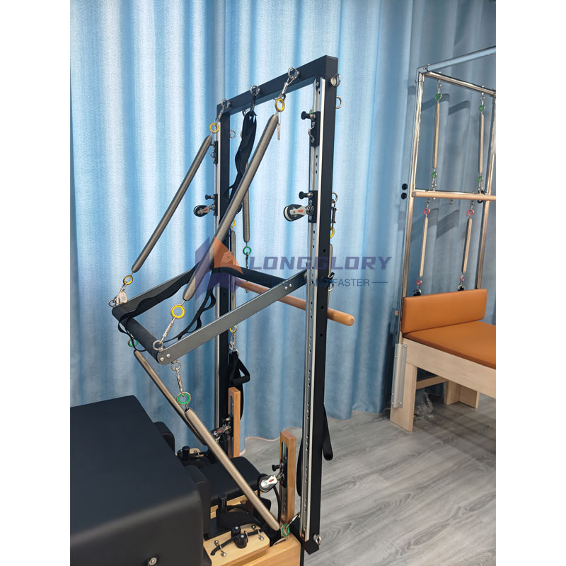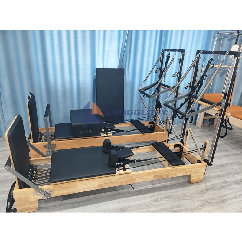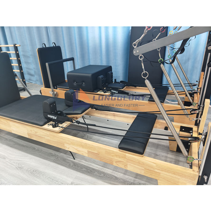 Pilates z dubového dřeva LongGlory s poloviční věží je vynikající reformátor pilates. Díky svému uživatelsky příjemnému designu a multifunkčnosti je tento reformátor Pilates s poloviční věží oblíbený mezi Pilatesovými studii a tělocvičnami.