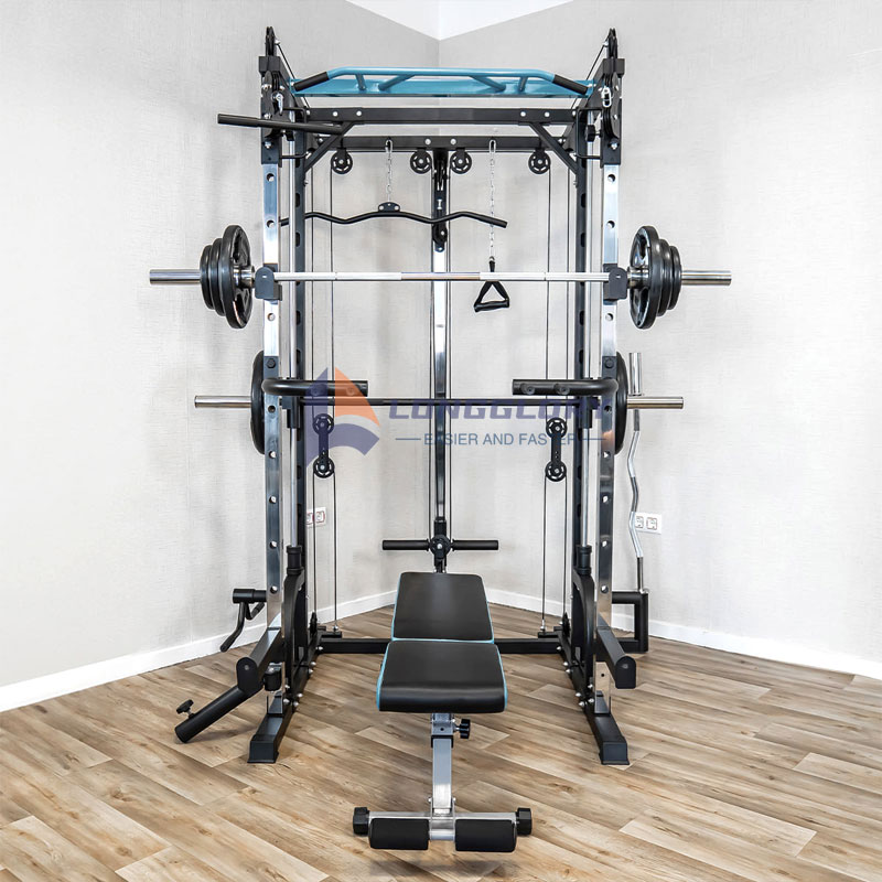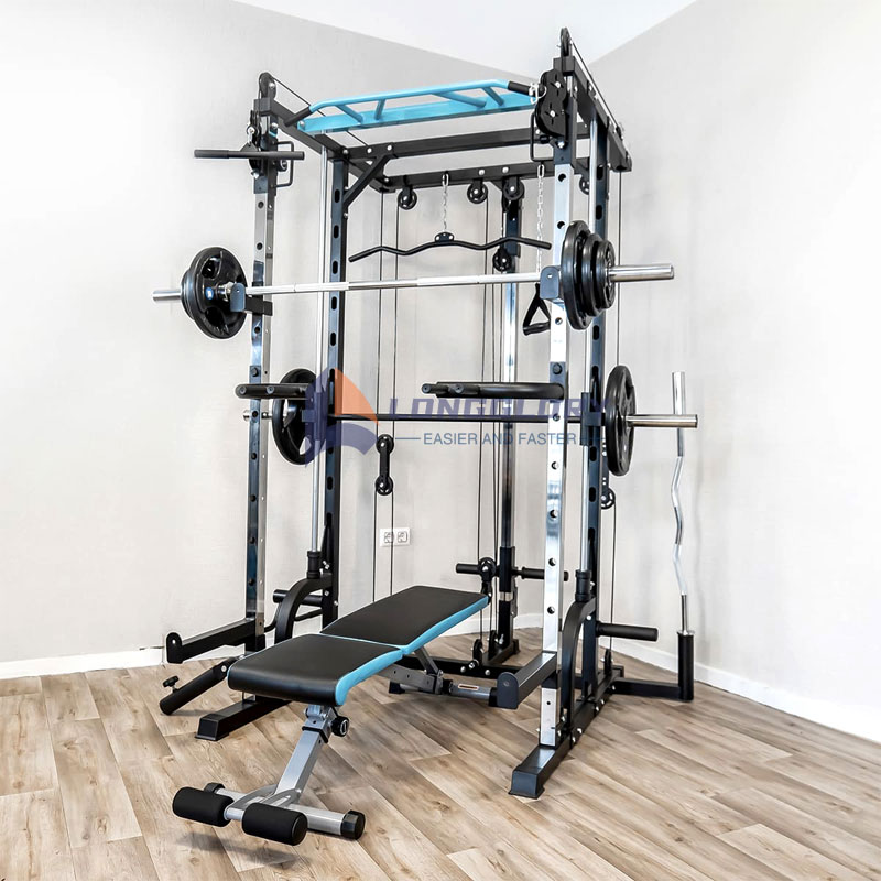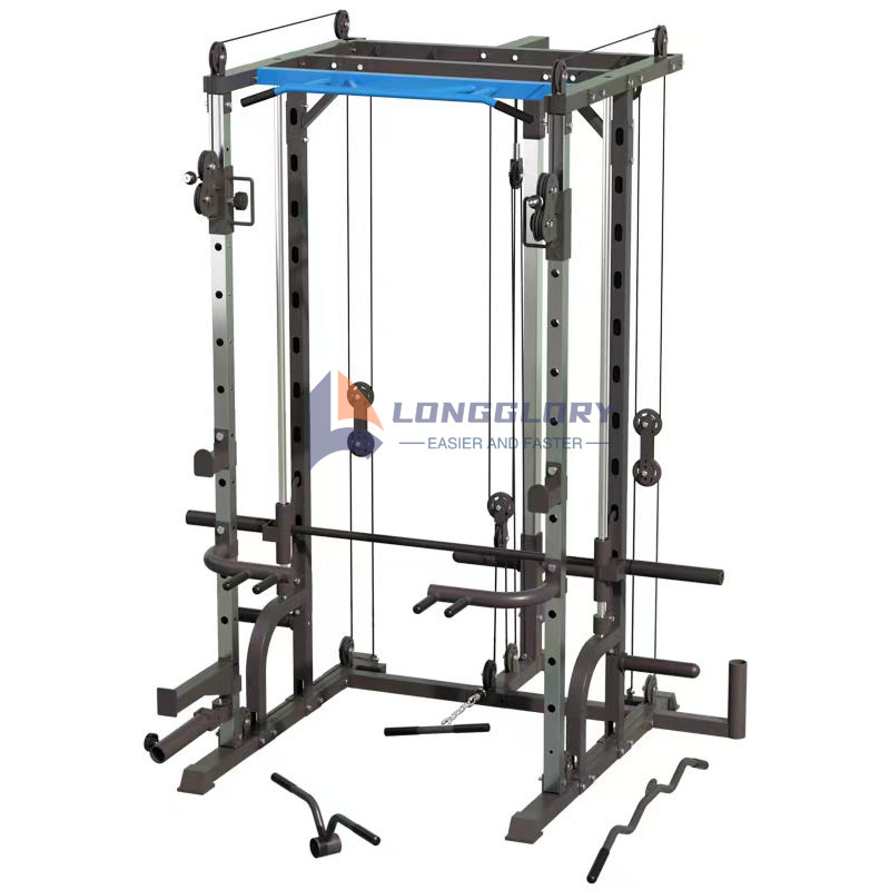 Všestrannost: Power Rack Home Gym je vybavena kladkovým systémem a kovářským systémem, stejně jako vícenásobnými nastavovacími a upevňovacími body, které uživatelům umožňují provádět řadu různých silových cvičení, jako jsou dřepy, tlaky na lavici, mrtvé tahy atd.