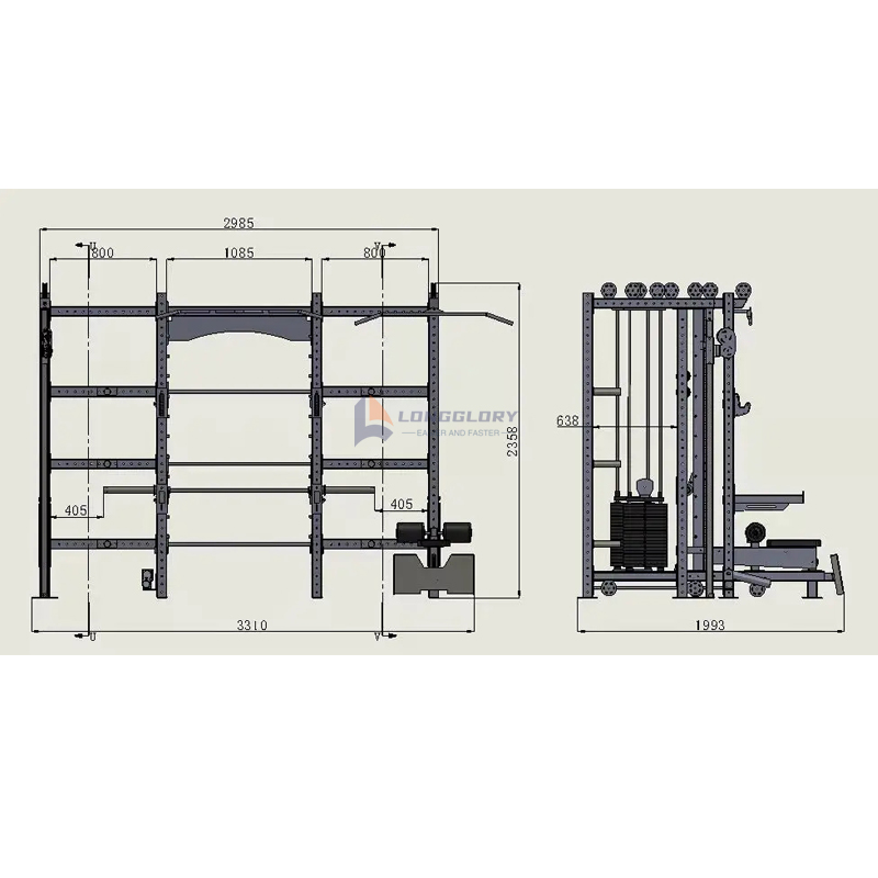 Power Rack Longglory s kabelovou kladkou je pečlivě navržený silový tréninkový stojan, který kombinuje více funkcí, takže je velmi vhodný pro malé tělocvičny a