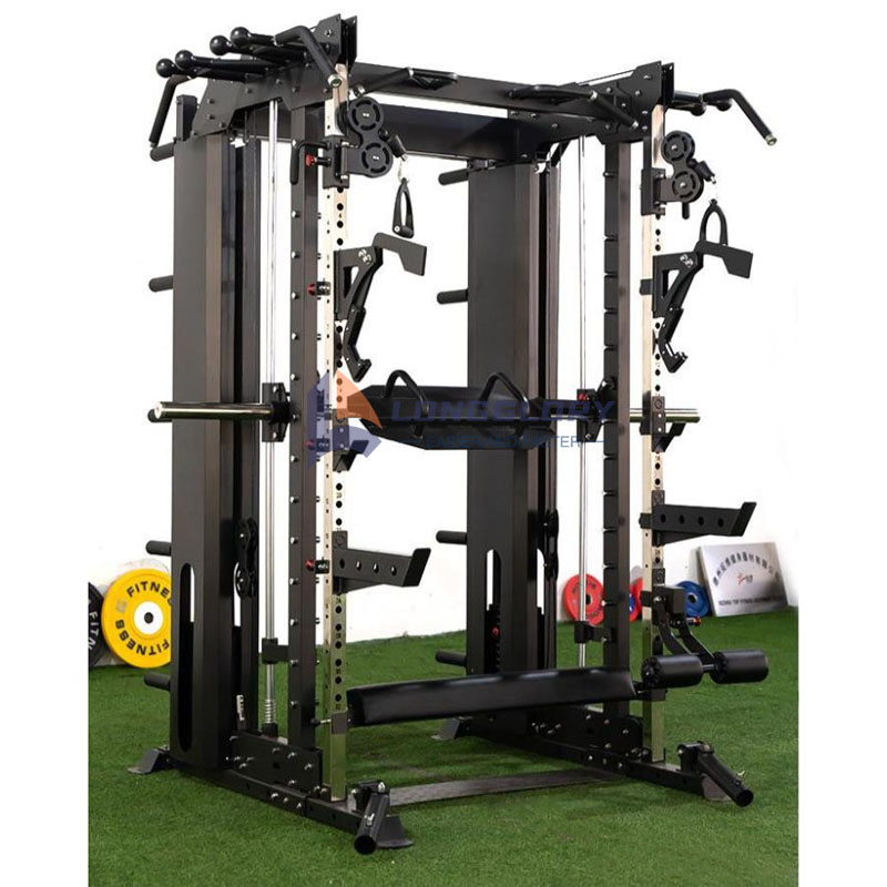 Stroj Smith s kabely je dokonale integrován s kabelovým systémem pro různé cviky, s několika jednoduchými úpravami můžete provádět cviky na stohování závaží, cviky s jednoručkami, cviky se dvěma pažemi, dřepy, vzpírání a další Různá cvičení.