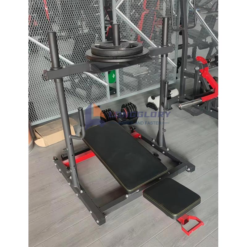5. Koncový trénink: Po dokončení tréninku uvolněte váženou desku lisovacího stroje svislé nohy, natáhněte pružinovou zamykací páku dolů na dno a poté přesuňte pomocnou desku zpět do své původní polohy.