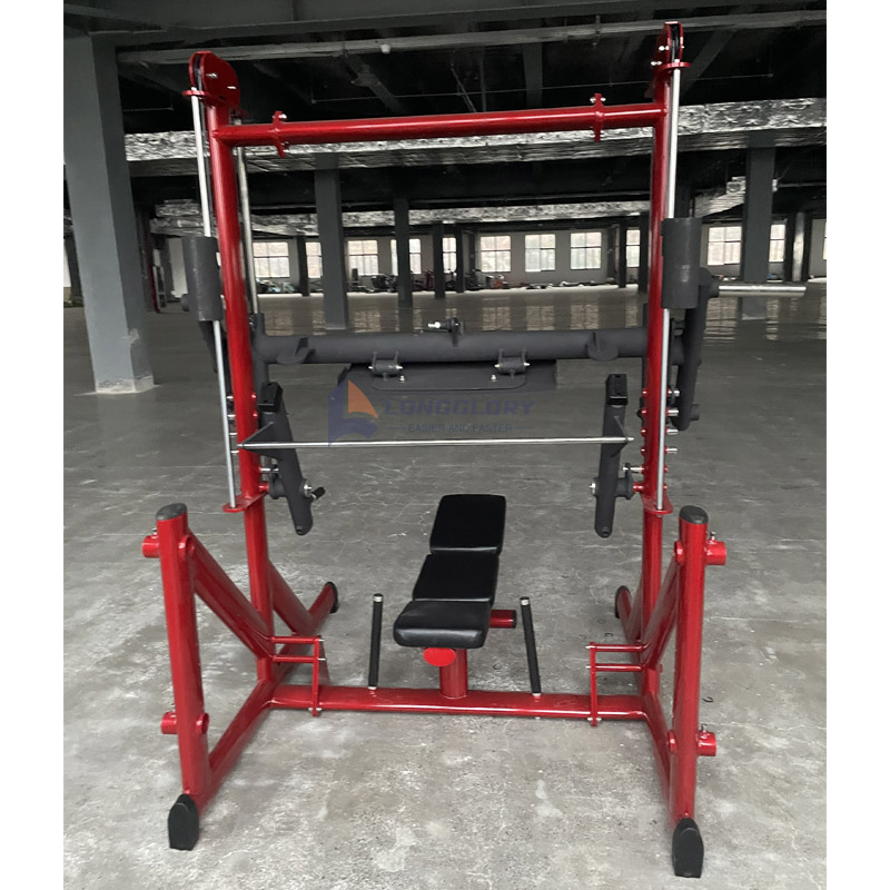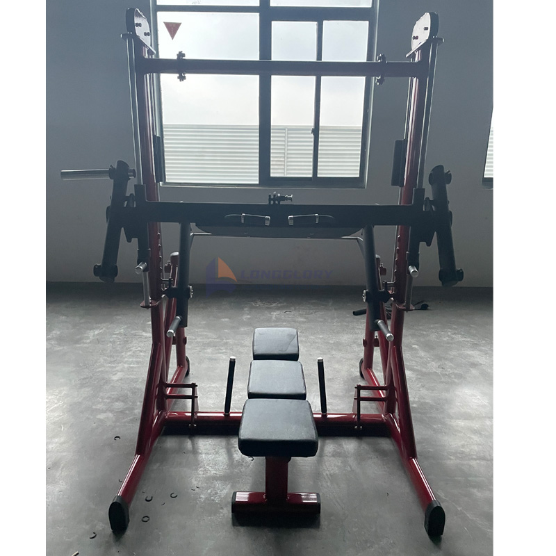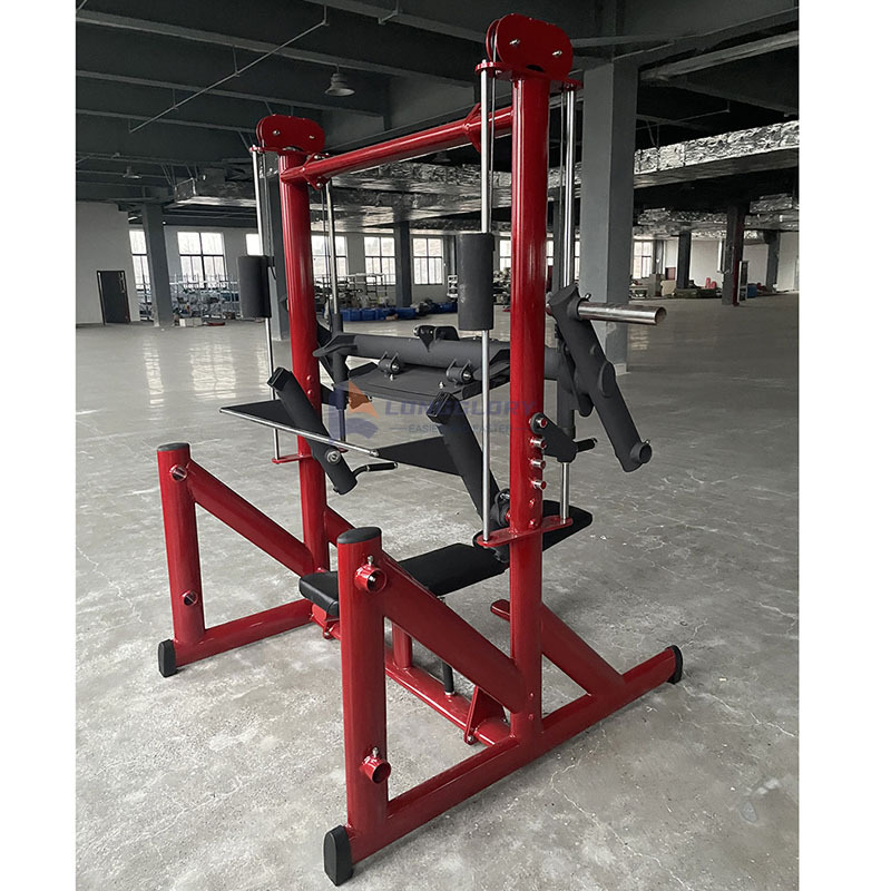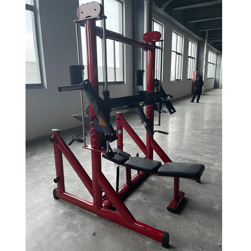 Robustní kovový rám: Vertikální nožní lis s naloženými deskami Tento rám se skládá z vysokopevnostní oceli o tloušťce 3 mm, odolává značné hmotnosti a tlaku a zajišťuje stabilitu a bezpečnost při používání. Zůstává stabilní a neviklá a nedeformuje se ani při vysoce intenzivním tréninkovém zatížení.